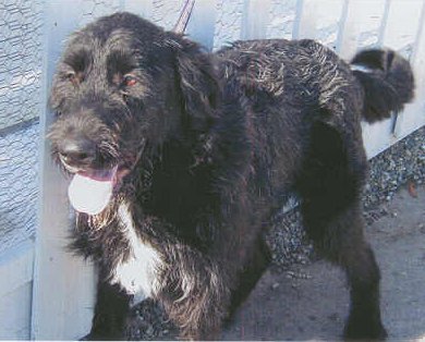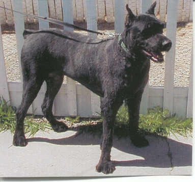 NAME: Diablo BREED: Bouvier des Flandres GENDER: Female (spayed) AGE: 4 yro COLOR: Black, docked & cropped SURRENDERED: 06/15/01 by family in Ferndale, MI that could no longer take care of her. PERSONALITY: Shy, gets along well with other dogs, likes children. SPECIAL NEEDS: None. **UPDATE: - Adopted 7/8/01 by loving family in Traverse City, MI |