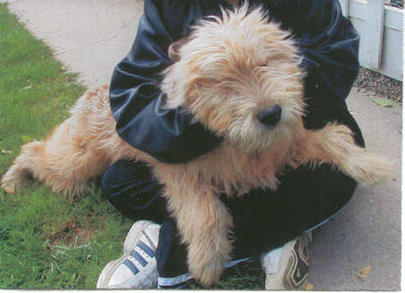 NAME: Scruffy (II) (renamed Willie Nelson) BREED: Bouvier mix GENDER: Male (neutered) AGE: 8 months old WEIGHT: COLOR: Fawn/apricot, natural tail and ears SURRENDERED: by family in Romulus MI (we rescued Benji his litter mate two months earlier). PERSONALITY: Very friendly and rambunctious, some manners, has had no training, was paid very little attention, does walk well on a leash. SPECIAL NEEDS: None. Up to date on all vaccinations. **UPDATE: - Adopted 12/15/01 by terrific family in Gobles, MI. Gets along fine with his new playmate, Elvis. So, don't be surprised if you now hear that Elvis and Willie Nelson were recently spotted in Gobles, MI. |