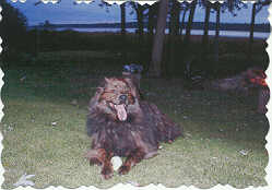 NAME: Chance (renamed Boomer Chance McFluffy) BREED: Possible Aussie Mix GENDER: Male (neutered) AGE: 10 to 12 weeks old COLOR: Dark brindle, natural ears and tail RESCUED: from Romulus Shelter PERSONALITY: Very lovable, a real cutie, just full of himself. SPECIAL NEEDS: None **UPDATE: - Adopted 05/26/01 by very anxious and loving family in Luskville, QC. Chance is one lucky pup. His new family was so anxious to get him that we met them in London, Ontario for the transfer. **MOST RECENT UPDATE: We received this picture with this note: "Boomer is doing well. He is still the loveable pup he was when you allowed him to come into our family...and believe me he is still full of himself! He melt the heart of anyone he meets, he is an incredibly affectionate dog who still loves his hugs, even demands them at times. I just wanted to let you know he is doing well". What more can we say :-) ![]() |