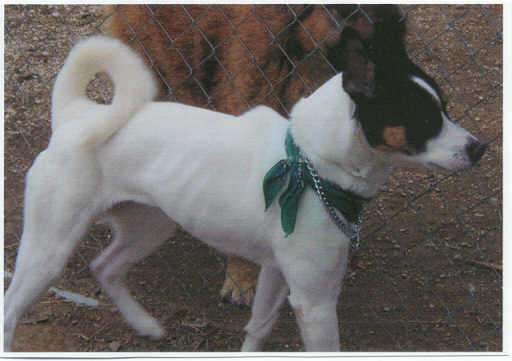 NAME: Colleen BREED: Terrier/Akita? mix GENDER: Female (spayed) AGE: 1 yro WEIGHT: 50# COLOR: White body, tri-colored face, tail curls up over back RESCUED: 03/19/01 from Genessee County Humane Society as a stray. PERSONALITY: House trained, very lovable. SPECIAL NEEDS: None **UPDATE: - Adopted 8/4/01 by wonderful family in Dearborn Hts, MI. Family has two daughters which is right up Colleen's alley. |