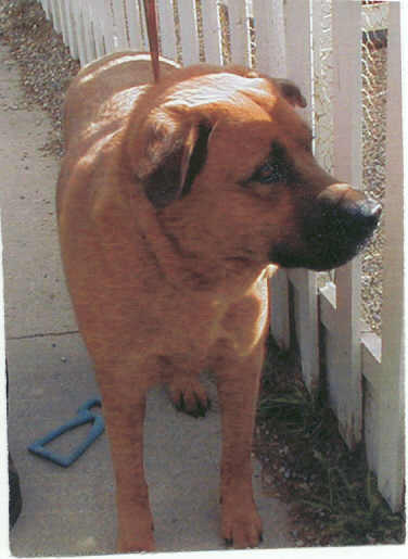 NAME: Dreyfus BREED: St. Bernard/Shepherd mix? GENDER: Male (Neutered) AGE: 2 - 3 yro WEIGHT: 130# COLOR: Brown w/black muzzle RESCUED: from Genesse County Humane Society. He was an owner give up due to babies allergies. PERSONALITY: Very good natured dog. SPECIAL NEEDS: None. Up to date on all vaccinations. **UPDATE: - |
