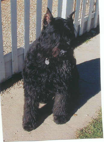 NAME: Riley (formerly Homer) BREED: Bouvier des Flandres. GENDER: Male (neutered) AGE: 1 1/2 yro WEIGHT: COLOR: Black, docked & cropped SURRENDERED: By family that could no longer care for him (originally from Sarnia, Ontario). PERSONALITY: Gets along fine with older children and other dogs. A real gentleman. Shots current until spring of 2002. SPECIAL NEEDS: None. Up to date on all vaccinations. **UPDATE: - Adopted 12/28/01 by a wonderful family in Wyandotte MI |