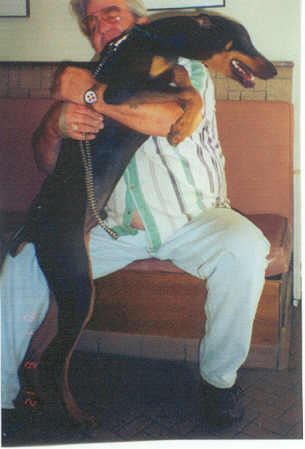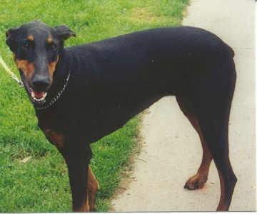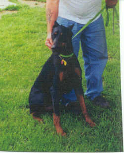 NAME: Maximillian BREED: Doberman Pinscher GENDER: Male (neutered) AGE: 5 yro COLOR: Black & Mahogany, docked ears & cropped tail SURRENDERED: Another casualty of divorce PERSONALITY: A fantastic dog. Obedient, house trained, well mannered. A real gentleman and a keeper. Loves children, loves to play. SPECIAL NEEDS: None. **UPDATE: - Max was adopted 8/23/01 by a loving family in Manistique, MI. |