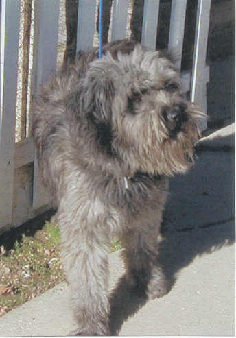NAME: Bootsie (renamed Paris) BREED: Bouvier/Picard mix GENDER: Female (spayed) AGE: 2 yro WEIGHT: 50# COLOR: Black/gray brindle RESCUED: 02/11/01 from Benton Harbor, MI PERSONALITY: Always wants to play. Comes immediately when called. Good girl. Wants to be a "family member". So cute with tufts on ears and tail - could be a Disney Movie star. SPECIAL NEEDS: None. **UPDATE: - Adopted 10/19/01 by "Forever" family in Painted Post, NY |