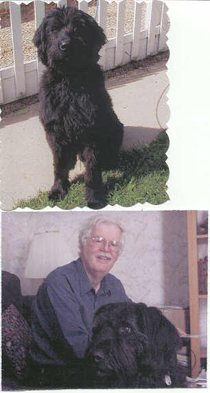 NAME: Merlin BREED: Bouvadour GENDER: Male (neutered) AGE: 2-3 yro WEIGHT: approx 60# COLOR: Black, natural ears and tail. RESCUED: from Flint, MI PERSONALITY: Very friendly, wants to please, good with girl dogs. When let out to do his business he doesn't wander off. Heartworm negative. SPECIAL NEEDS: None. Up to date on all vaccinations. **UPDATE: - Adopted 10/30/01 by really great family in Saratoga Springs, NY **MOST RECENT UPDATE: Here is the latest picture of Merlin with his "Dad". He had some ups & downs medically, but otherwise is coming along just fine. |