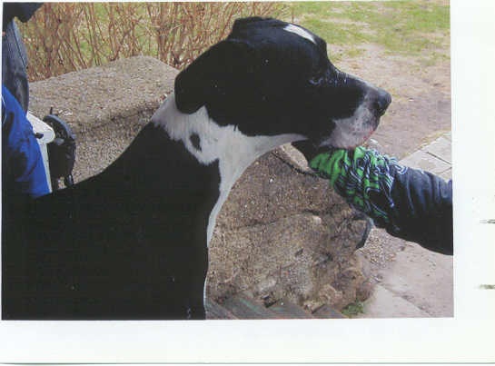 NAME: Zodiac BREED: Great Dane GENDER: Male AGE: 3 1/2 yro COLOR: Black & white, natural ears & tail SURRENDERED: 04/08/01 by owner because of his size PERSONALITY: Mild mannered, good with people & children SPECIAL NEEDS: None. **UPDATE: - Adopted 04/08/01 by family in Silverwood, MI. |