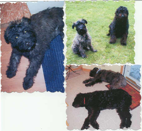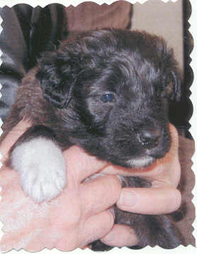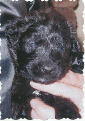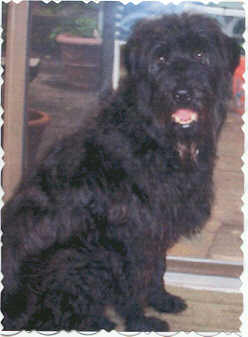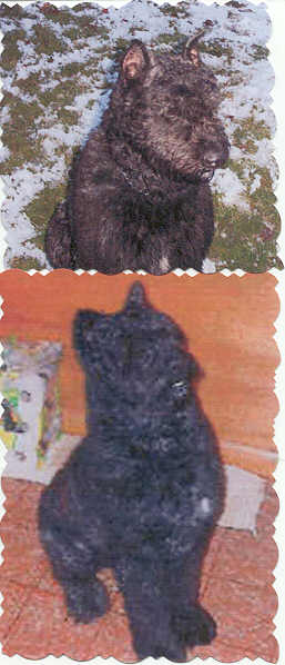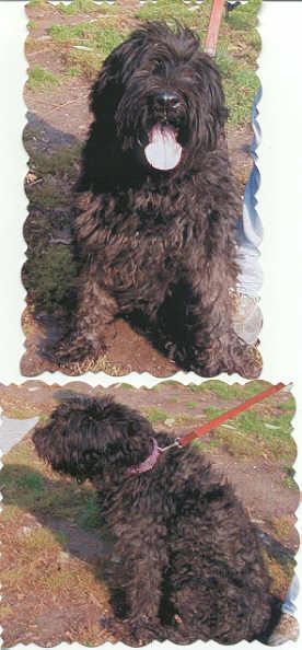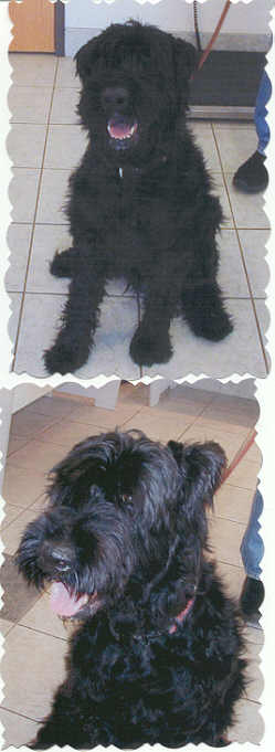 NAME: Josey (renamed Chloe) BREED: Bouvier des Flandres GENDER: Female AGE: Born 11/01/02 WEIGHT: COLOR: Black, natural ears, docked tail SURRENDERED: Due to death in family PERSONALITY: Cute as a bug in a rug!! Just full of herself. Surrendered along with her mother, Casey, (shown above). UTD on puppy shots. **UPDATE: Casey (mom) and Josey (her pup) were both adopted today 1/11/03 by a very loving and compassionate woman in Milford, MI that had just recently and quite unexpectedly lost her beloved Bouvier, Tinkerbell (one of our rescues) to the Rainbow Bridge. She couldn't bear to think of separating them so opted to adopt them both. |