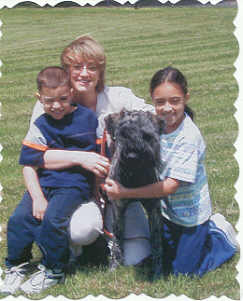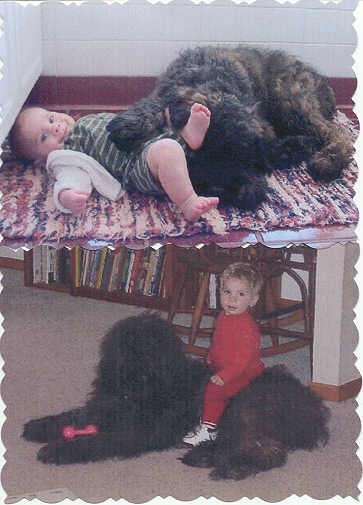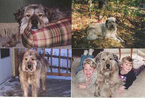 NAME: Angus III BREED: Bouvier des Flandres (registered) GENDER: Male (neutered) AGE: Born 11/17/01 WEIGHT: COLOR: Dark gray brindle, natural ears, docked tail SURRENDERED: By very loving family in WI that hated to give him up because they love him dearly, but he would not get along with house cat and other canine companion PERSONALITY: Housetrained, very loving and gentle with children (these pictures are worth a thousand words :-) Walks fairly well on leash. Requires a completely fenced in yard. Bonds very quickly, wants to be by your side. Rides well in car. UTD on vaccinations. Not good with cats - very alpha, should go to family with children and no other dogs. **UPDATE: Angus III was adopted by a very compassionate and loving family in Reynoldsburg, OH. Is this a picture of happiness or what? We have already received two very favorable phone calls regarding Angus' progress. He LOVES both children and is loved in return by the entire family. His eyes just sparkled when he saw the children for the first time. ![]() |