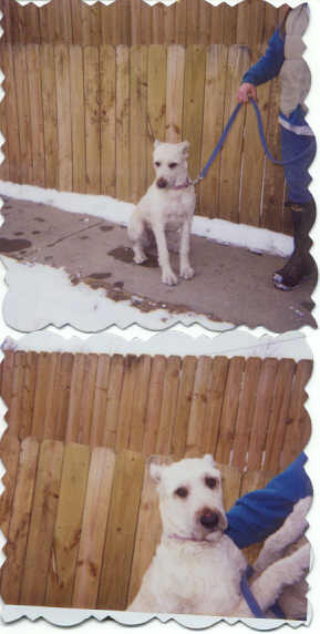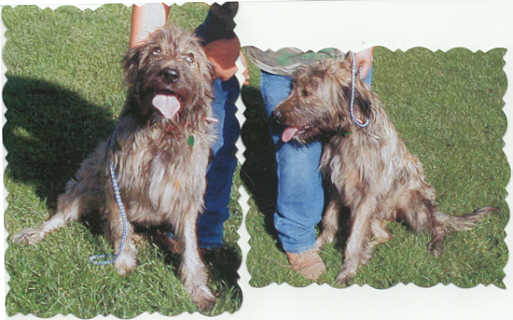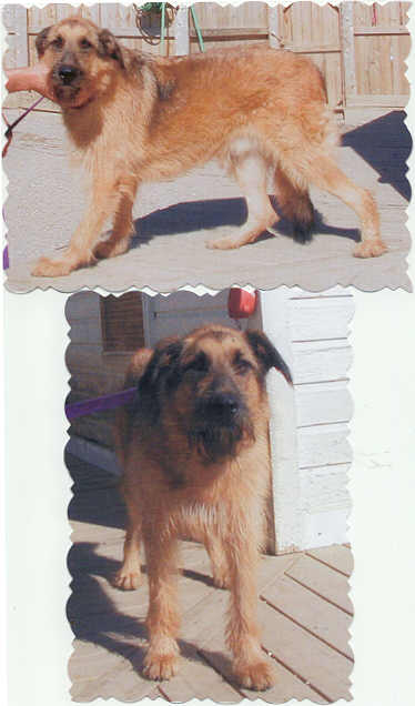 NAME: Pedro BREED: Briard (mix ?) GENDER: Male (neutered) AGE: 1 yro WEIGHT: Approx 65#, stands 26" at shoulders COLOR: White/fawn, natural ears and tail RESCUED: From Clay County Humane Society 6/7/03. We are very greatful that the former owner was considerate and caring enough to leave a note with Pedro when the left him tied to the front of the shelter.(*) PERSONALITY: Very loving and friendly, gets along great with older children. Walks fairly well on leash. House & crate trained. Will follow you anywhere and is perfectly satisfied laying at your feet. *Note from owner stated they had a very small apartment and lacked the time to spend with him. Gets along well with most dogs (prefers females - of course :-). He loves to play and may be a little too rambunctious for small children. Also mentioned he is a wonderful dog that deserves more time than they were able to give him. UTD on vaccinations. Not cat friendly. **UPDATE: Pedro was adopted 9/19/03 by a wonderful family in Farmington Hills, MI that feel in love with him as soon as they saw him. |