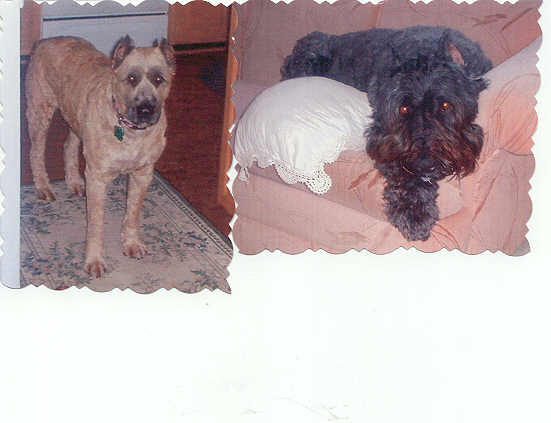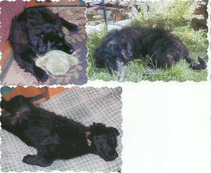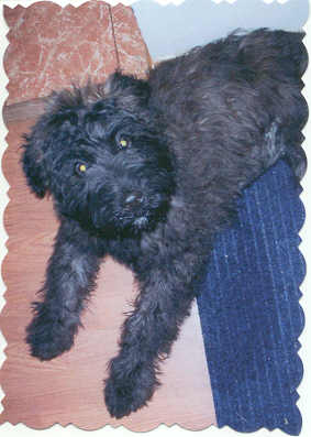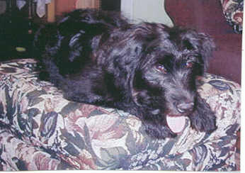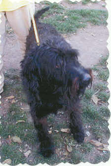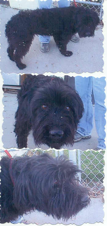 NAME: Scruffy III (renamed Little Bear) BREED: Bouvier des Flandres mix? GENDER: Male (neutered) AGE: 1-2 years young WEIGHT: 62# COLOR: Black, natural ears and tail RESCUED: From Sanilac County Animal Control, Sandusky, MI as a stray PERSONALITY: A real people-pleaser. Well-mannered, obedient, housetrained. Rides well in car. Gets along great with other dogs, humans and children. He appears to know basic commands. Walks fairly well on leash. He is a real joy to be around. He is a real "cuddle bunny" and would be a fantastic addition to any family. Just one look into those gorgeous brown eyes will just melt your heart. New home must have completely fenced in yard. Not cat friendly. **UPDATE: Scruffy was adopted 11/24/03 by the same loving and caring family that also adopted Agnes (renamed Maggie) in Clawson, MI. |
