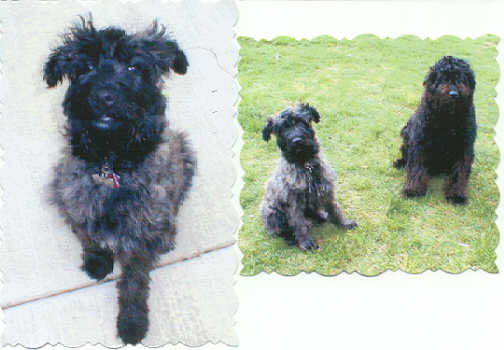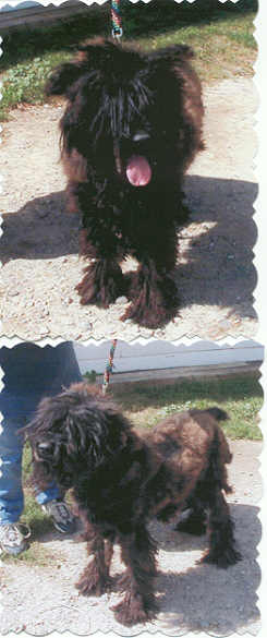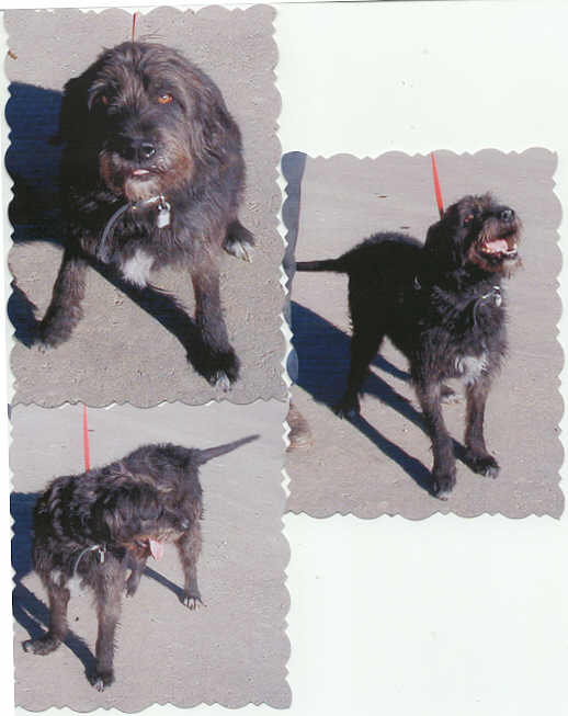 NAME: Mr. Kelly (renamed "Black Jack Bouvier" - Jack for short) BREED: Bouvier des Flandres GENDER: Male (neutered) AGE: 1-2 yro? WEIGHT: COLOR: Black brindle, natural tail and ears RESCUED FROM: Genesee Cty Animal Control as a stray PERSONALITY: Severely matted and desperately needing a complete shave-down and bath. To give you an idea how badly matted HE was: when we rescued him we were told he was a female and had to pay a spay deposit to the shelter. WELL, low and behold, when we shaved (supposedly) HER down, much to our surprise, we found that she had the equipment of a male not a female. HE evidentally didn't lift his leg becauses he couldn't due to the mats. He is very loving, not very large, gets along great with other dogs. He is so eager to please and will do anything for a kind word or show of affection. UTD on all vacs. Not cat-friendly. **UPDATE: Adopted 05/14/03 |