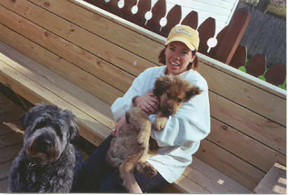 NAME: Bob (renamed Charlie BREED: Bouvier mix GENDER: Male AGE: Born 1/21/03 COLOR: Fawn Brindle, natural ears and tail PERSONALITY: Bob was one of eleven puppies born on 1/21/03 to a purebred Bouvier, Dutchess, that happened to have been very pregnant when we rescued her. **UPDATE: Adopted 3/22/03 by a very loving family in Chicago, IL. Bob not only has a new Mom, but also has a new Bouvier brother "Max the Wonderdog" to grow up with. **MOST RECENT UPDATE: Here is a picture of Charlie with his forever Mom and Bouv brother Max. Charlie now weighs 39#. His new mom said that she and Max love Charlie dearly. He is extremely intelligent, active, happy, very eager to please and always wagging his tail. Charlie follows Max around constantly, often snuggling up next to him. They are all pleased with the great new addition to their family. |