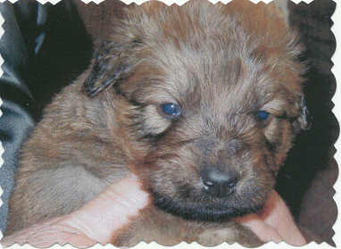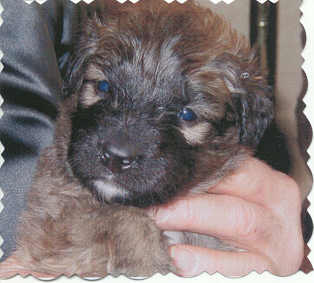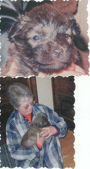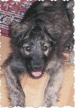 NAME: Moll Flanders (Mollie) BREED: Bouvier des Flandres GENDER: Female (spayed) AGE: 6 months WEIGHT: 40# COLOR: Currently brown/fawn brindle, will probably turn to gray/fawn brindle. Docked tail, natural ears. RESCUED: Found running loose in apartment complex, turned into the Kent Couty Animal Shelter. PERSONALITY: Housetrained, sits, walks well on leash. Took her to vet and found she has a loose rear hip socket which may have to be surgically corrected. UTD on vaccinations. **UPDATE: Adopted by the Fern family the same day they had their beloved "Ben" laid to rest. |