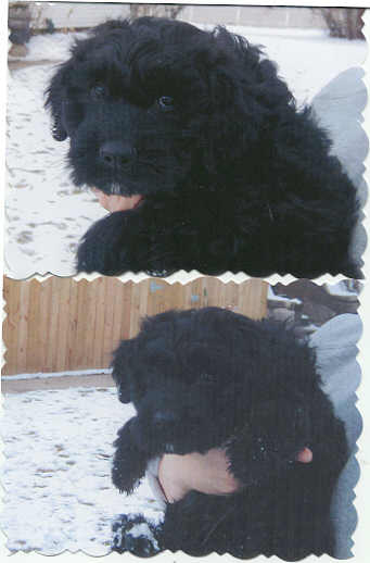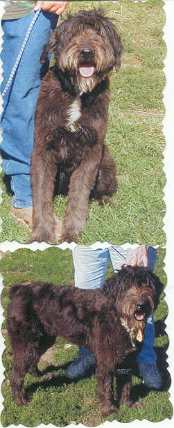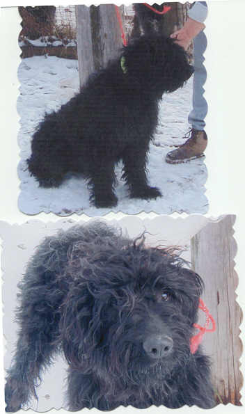 NAME: Angus BREED: Bouvier des Flandres/Portuguese Water Dog mix GENDER: Male (neutered) AGE: 2-3 yro WEIGHT: 37# COLOR: Black, docked RESCUED: from Detroit Animal Control - picked up as a stray PERSONALITY: Possibly housetrained. Rides well in car. Very jolly fellow, playful, active, friendly, and gets along well with other dogs. Being treated for coccidia. UTD on vaccinations. Not cat friendly. **UPDATE: Angus was adopted 2/16/03 by a wonderful family from Schaumburg, IL. They were going to fly up next week but decided they couldn't wait any longer, so they drove up to get him and bring him home to his new family and forever home. |