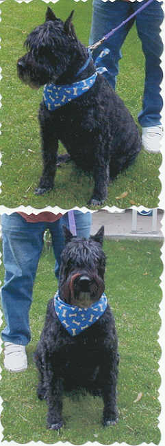 NAME: Ralph BREED: Bouvier des Flandres mix? GENDER: Male (neutered) AGE: 9 -12 months old (estimated by vet) WEIGHT: 91# COLOR: Black, natural ears and tail. SURRENDERED: By woman in Los Angeles, CA that rescued him from the LA County Animal Control PERSONALITY: Ralph is a lover and just so full of life. He is housetrained and gets along fantastic with other dogs and children. Ralph was saved from a shelter in Los Angeles by a woman that had to give him up due to losing her job. She contacted one of our adopters in LA and requested assistance in finding him a good home. The rescues that were contacted locally were not interested in Ralph probably because he was not docked and cropped and most likely a mix. We made arrangements to have him updated on his shots and flown to us in Michigan. We cannot thank the people (Heidi & Ken) in CA enough for wanting to save Ralph. Ralph has a lot of love and companionship to offer to his new family. UTD on all vaccinations. Probably not cat friendly. **UPDATE: Ralph will be going to his new home in Novi, MI on 11/28/03. He will be joining his new forever family (Mom, Dad, sister and four-legged Airedale Terrier brother, Trevor). This is a "walking" family and we are quite sure that Ralph will love every moment of their attention, love and companionship. |