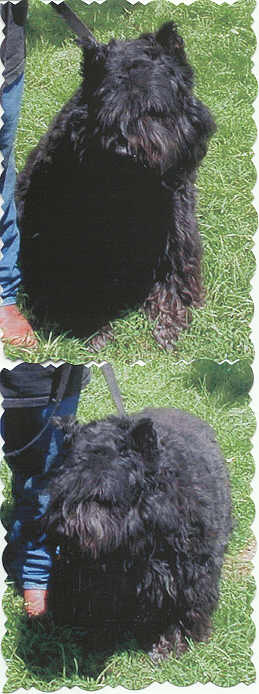 NAME: Casey BREED: Bouvier des Flandres GENDER: Female (spayed) AGE: Born 05/13/01 WEIGHT: COLOR: Black, natural ears, docked tail SURRENDERED: Due to death in family PERSONALITY: Very reserved and timid. Housetrained. Surrendered along with her 7week old puppy, Josie (shown below). UTD on vaccinations. **UPDATE: Casey (mom) and Josey (her pup) were both adopted today 1/11/03 by a very loving and compassionate woman in Milford, MI that had just recently and quite unexpectedly lost her beloved Bouvier, Tinkerbell (one of our rescues) to the Rainbow Bridge. She couldn't bear to think of separating them so opted to adopt them both. |