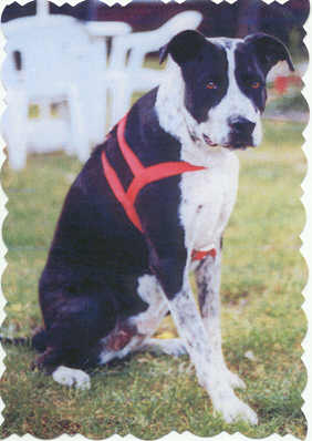 NAME: Huckleberry BREED: Possible Great Dane/Heinz 57 mix GENDER: Male (neutered) AGE: 3.5 yro. WEIGHT: Approx. 100# COLOR: Black & White RESCUED FROM: PERSONALITY: Huckleberry loves children or whoever will play with him, loves attention. Could use a little obedience training (due to his size). He needs a home with a fenced in yard so that he can run and play. UTD on all shots. He has a big bark, but no bite. Just loves to sit and talk with you! **UPDATE: Huckleberry was adopted 4/12/03 by family with two youn boys. Huckleberry had lots of doggie kisses for everyone - he hopped into their vehicle and headed for his new forever home. |