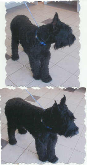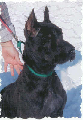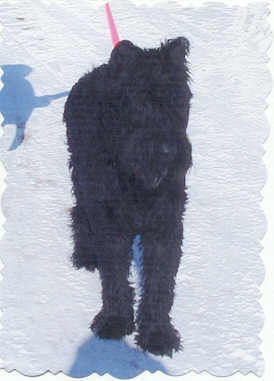 NAME: Shauna (renamed Sally BREED: Giant Schnauzer GENDER: Female (spayed) AGE: 10-12 Months WEIGHT: 78# COLOR: Black, docked & cropped RESCUED: From Iosco Humane Society, Tawas City, MI as a stray PERSONALITY: Gorgeous, well-mannered, obedient, housetrained, just wants to please. Rides well in car. Gets along great with other dogs, humans and children. She appears to know basic commands. Walks fairly well on leash. She is a real beauty and a pleasure to be around. New home must have completely fenced in yard. Not cat friendly. **UPDATE: Adopted 11/22/03 by a very wonderful and caring family in Metamora, MI. **MOST RECENT UPDATE: Here is a breathtaking picture of Sally aka Shauna "thundering" through the snow. Makes you want to be there to catch her when she arrives :-) ![]() **MOST RECENT UPDATE: Just received this picture of Sally (aka Shauna) with her new Giant Schnauzer "do". Isn't she gorgeous? What a difference love, and a good groomer can make to bring out the beauty and personality of a rescue dog! ![]() |