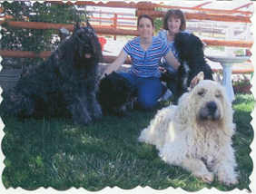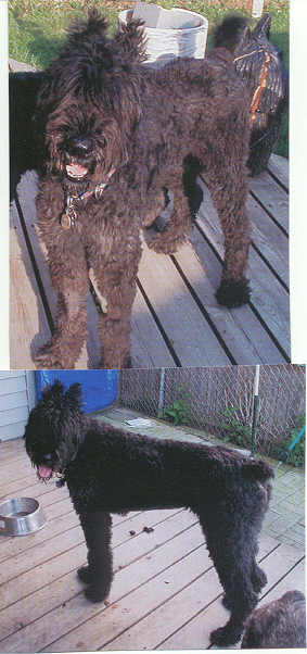 NAME: Dakota BREED: Bouvier des Flandres GENDER: Male (neutered) AGE: Born 8/1/96 WEIGHT: 100# COLOR: Black, docked & cropped SURRENDERED: By family because of babies allergies PERSONALITY: Housetrained, obedient, loving, good with children and other dogs. Dakota was surrendered along with his lifelong companion, Sophie (see below). Beautiful coat and presence. We would very much like to adopt this duo out together. They have been together all of their lives and cannot bear to be separated from each other. UTD on vaccinations. Not cat friendly. **UPDATE: Adopted 8/16/03 by a wonderful, loving family in Springfield, MO. We transported them to Rockford, IL where their new family met us. They both jumped into the vehicle snuggled up with the children and never looked back. Dakota and Sophie now has a new forever family that were caring enough to want to keep them together :-) |
