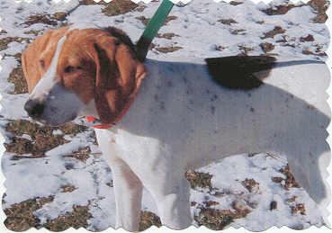 NAME: Maggie BREED: Treeing Walker Hound GENDER: Female (spayed) AGE: about 10 months young WEIGHT: COLOR: Tri-Color RESCUED: Family found her in their garage looking for food and shelter. Fell in love with her. Unable to keep her because they both work and have two large yellow labs. Wanted to make sure she found a loving forever home. PERSONALITY: Housetrained. Very good natured. Good with children. Very loving, aims to please. Gets along great with other dogs. UTD on vaccinations. Not cat friendly. **UPDATE: Maggie was adopted 3/22/03 by a wonderful couple in Cleveland Heights, OH. They drove up and brought Maggie's new sister, Penny (a Redbone Coonhound that they found as a stray when she was 11 months old) with them - it was one big happy family. |