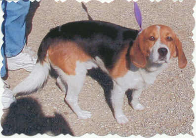 NAME: Snoopy BREED: Beagle GENDER: Male (neutered) AGE: 2yro. WEIGHT: 35# COLOR: Tri-color (Black, tan & white) docked tail, natural ears RESCUED: Found wandering down the middle of a dark road in the country. Ended up following the persons car all the way home; slept on the porch over night and was brought to us to be saved. PERSONALITY: ATTENTION ALL PARENTS!!! Your prayers have been answered!!! If you are looking for a real "love bug" dog that absolutely adores children - SNOOPY IS YOUR MAN!!!! He appears to be housetrained because he is very neat and clean when crated. He gets along fantastic with ALL children, adults and other dogs. Snoopy is just full of love and will make anyone a wonderful, loving companion. Must have completely fenced yard. UTD on vaccinations. Possibly cat friendly. **UPDATE: Snoopy was adopted 9/14/03 by a very loving family with two young sons in Taylor, MI. |