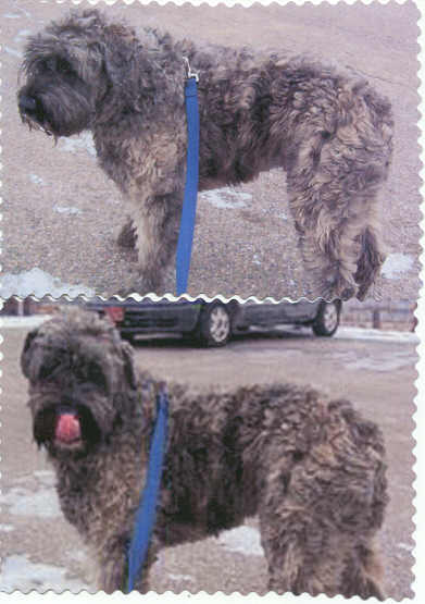 NAME: Victor BREED: Bouvier des Flandres GENDER: Male (neutered) AGE: Born 12/9/2000 WEIGHT: COLOR: Light gray brindle, docked, natural ears RESCUED: From Ingham County in Mason, MI - owner surrender PERSONALITY: Housetrained. Rides well in car. Microchipped. A prince of a guy. Gets along well with other dogs and children. UTD on vaccinations. Not cat friendly. **UPDATE: Adopted by a compassionate and caring gentleman in Shelby Twp, MI. that just recently lost his beloved 16yro Bouvier, Bruce (rescue f/Maryanne Harvey in 1990). |