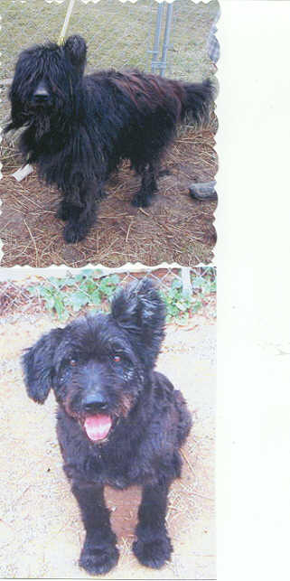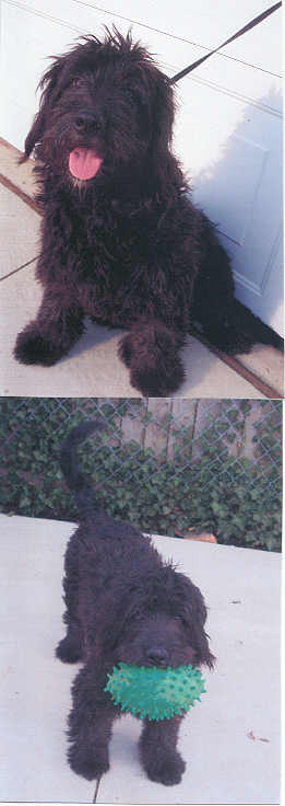 NAME: Fiona BREED: Tibetan Terrier mix (Bearded Collie?) GENDER: Female (spayed) AGE: 10-12 Months Young. WEIGHT: 35# COLOR: Black, natural ears and tail. RESCUED: From Kansas Hmne Socieety in Wichita, KS. PERSONALITY: Fiona was picked up as a stray along with her sister Faith. We drove to Wichita, KS to pick them both up. Fiona is a very bubbly and adorable little girl with a very loving heart. She does like other dogs, but prefers males as a companion. She has a super soft and fuzzy coat and keeps herself neat and clean. Not cat friendly. UTD on vaccinations, heartworm negative. Must have a completely fenced and secure yard. **UPDATE: Fiona was adopted 2/5/05 by a very loving family in Grosse Pointe Woods, MI. |
