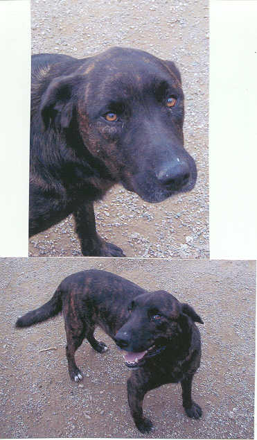 NAME: Brutus BREED: Lab mix GENDER: Male (neutered) AGE: 2 yro. WEIGHT: COLOR: Black/brown brindle. RESCUED: From Genesee County Humane Society as a stray. His time was up and they felt he was just too good of a dog to be euthanized. PERSONALITY: Brutus is housetrained. Brutus is a pretty good sized boy and has matured quite a bit from the time we rescued him. He loves to play fetch and is pretty active for his size. He is very strong and we wouldn't recommend him with small children due to his size. He does fairly well on leash. He is extremely affectionate and loves to give kisses despite his intimidating look. He is an absolute love. He is active and would need a nice yard with some room to run and of course play fetch. He minds very well and lets you know when he has to go potty. He loves rawhide chewy sticks. He gets along well with other dogs. These are not the best pictures but he is so affectionate and tries to give kisses rather than pose for his pictures. He is a wonderful dog and it will break his caregivers heart to see him leave - but he desperately needs a family to call his own. We can't believe that he has not already been adopted by now. Must have completely fenced and secure yard. UTD on vaccinations. Not cat friendly. **UPDATE: Brutus was adopted 2/19/05 by a wonderful family in Livonia, MI |