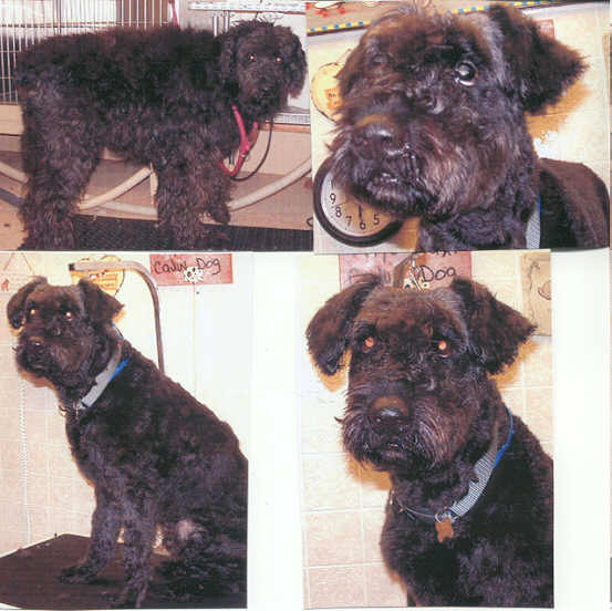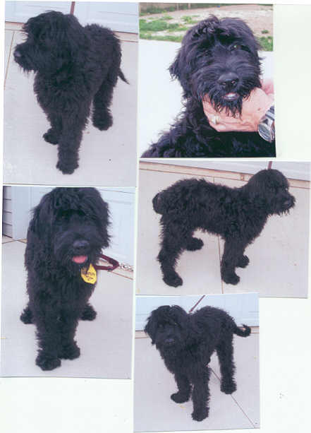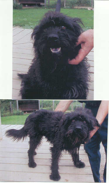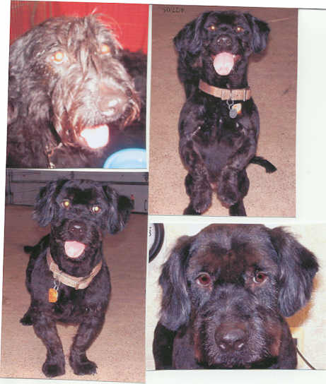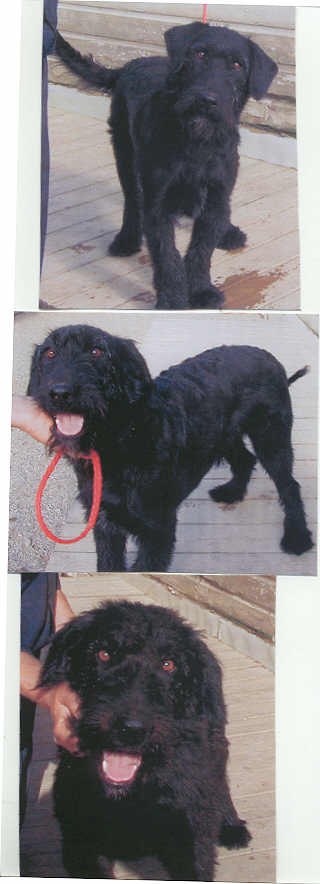 NAME: Kippy (renamed Angus) BREED: Bouvier or Giant Schnauzer/possible Lab mix. GENDER: Male (neutered). AGE: 8-10 Months Young. WEIGHT: 39lbs. COLOR: Black, white chest blaze, natural ears and tail. RESCUED: 10/7/04 from the Bloomington Animal Control in Bloomington, IN. PERSONALITY: Housetrained. Very lovable, gets along well with other dogs and people in general. Kippy was originally one of many puppies being sold out of a box in a department store parking lot. Someone contacted the Bloomington shelter and they sent a representative out and talked the owners into relinquishing the rest of the puppies to the shelter. Kippy and his brother Benny were adopted to two different families through the shelter. Kippy was later surrendered to the shelter because he was "too puppy". We contacted the shelter and made arrangements to pick Kippy and his brother Benny up and we had them transported to Dayton, OH. Kippy was adopted while in Dayton, OH - and we made arrangements for Benny to be transferred from Dayton, OH to us in Michigan. UTD on vaccinations, heartworm negative. Not cat friendly. Must have a completely fenced and secure yard. **UPDATE:Kippy was adopted out to a family in Ohio and returned to our "halfway house" in Dayton. He was returned because they could not housetrain him. Well, his foster Mom, got him to use a doggie door within a couple of days. Kippy has successfully completed at least two obedience classes with flying colors. His new Mom just adores him and he absolutely adores her in return. He just needed some "special time" and a lot of companionship. Kippy gets to go to work with his Mom every day and has the run of the house and everyones heart. |