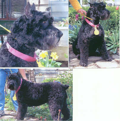 NAME: Parker BREED: Bouvier des Flandres GENDER: Male (neutered) AGE: 4 years young. WEIGHT: COLOR: Black, natural ears and docked tail. RESCUED: From vet clinic in Plymouth, MI PERSONALITY: Parker was picked up by the local police department and brought to the vet because they do not have a local animal shelter to hold strays. The groomer said: " What a dog! He is definitely a people dog! A real clown! He will do a low, sad howl if he is left alone or doesn't get his share of attention. While trying to groom him, he thought he should sit on her lap. He would back up and plop right in her lap as if to say OK let's us BOTH get comfy". Parker is full of love and kisses. He was very excited when he was all cleaned up. Although he was an intact male (but is not now), he didn't have the negative, pushy, crabby male attitude that a lot of males have when being groomed -- he is a definite winner. Parker is housetrained, loving and gets along with people and other dogs. He has a very even disposition and would make someone a very loving and devoted companion. Must have a completely fenced and secure yard. UTD on all vaccinations, heartworm negative. Not cat friendly **UPDATE: Parker was adopted 3/29/05 by a very loving family in Grosse Pte Woods, MI that had been waiting for quite a while for the "Mr. Right" - well Parker fit the bill to a "T". |