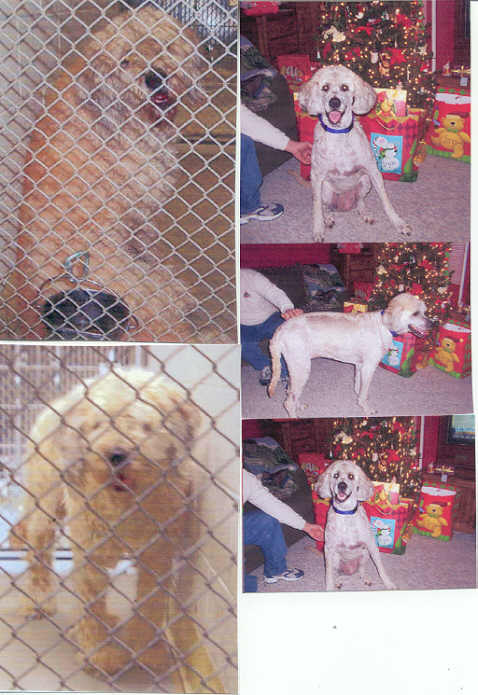 NAME: Gabriel "Gabe" BREED: Golden Retriever GENDER: Male (neutered) AGE: 7-8yro WEIGHT: 50# COLOR: golden RESCUED: Found running in Almont, MI in the middle of rush-hour traffic PERSONALITY: Gabriel (named because he had to have had a Guardian Angel on his shoulder at the time) was found running in traffic by our groomer. He is very friendly and came right to her when she stopped traffic and opened her car door. We have not had him neutered yet because we are hopeing that his owner is looking for him. He was found without a collar on and we had him checked for a micro-chip. Gabe is an absolute love and we are hopeing that someone is desperately looking for him. If not, we will have him neutered and vaccinated and he will make a very welcome addition to any family. Must have a completely fenced & secure yard. **UPDATE: Gabriel was neutered and updated on all of his shots. He was adopted 9/17/05 by a "Golden Lover" in Riverview MI. |