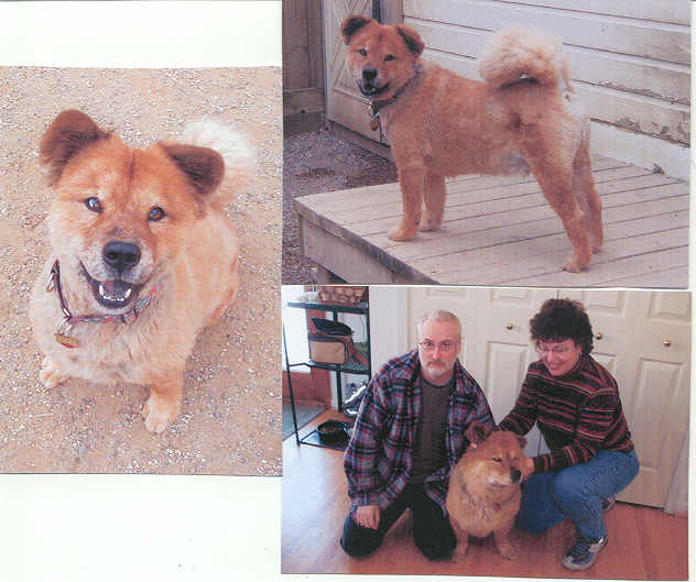 NAME: Melvin (renamed Vinny) BREED: Aussie/Chow mix? GENDER: Male (neutered) AGE: 4-5yro. WEIGHT: COLOR: Golden/Red & white, natural ears and tail. SURRENDERED: By family in Romeo, MI that could no longer keep him or his companion. PERSONALITY: Melvin is a good boy. Housetrained, very loving and alert. Melvin gets along great with people, older children and other dogs. Melvin has a marvelous personality. If you are down in the dumps, just spending five minutes with Melvin changes your whole outlook on life. He has so much expression in his face and demeanor that he has an additictive personality. Must have completely fenced and secure yard. UTD on all vaccinations. Not cat friendly. **UPDATE:Melvin was adopted 2/5/05 by a very loving family in Livonia, MI. They just love him to death (as you can see from the picture taken on Melvins' adoption day. **RECENT UPDATE: Here is a picture of Melvin the day he was adopted with his new Mom & Dad. The second is a picture (one of many) that we received on 6/24/06 when Melvin and his Mom came to a function we were at in Redford Twp, MI. Melvin is doing fantastic. He is the apple of his Mom's eye. It was so good to see them both and to see how well Melvin was doing. ![]() |