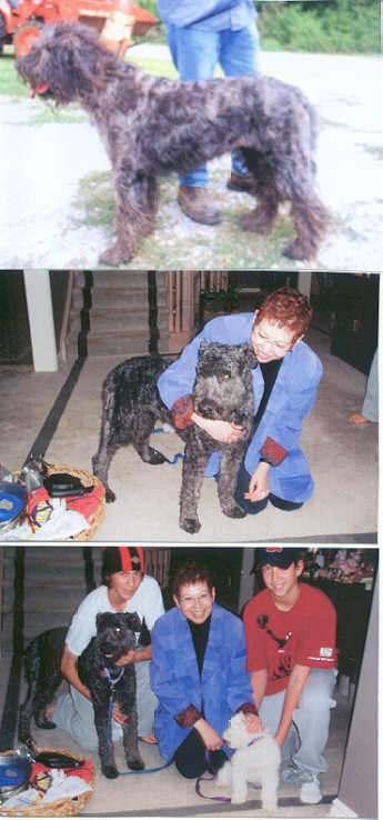 NAME: Baloo "Lou" BREED: Bouvier des Flandres GENDER: Male (neutered) AGE: born 5/27/03 WEIGHT: 83# COLOR: Light Gray, docked tail, natural ears RESCUED: PERSONALITY: Hi, my name is Baloo, but I like to be called Lou. I have been shuffled around more than a deck of cards. I was adopted when I was only three months old from a shelter in Canada but returned because I was too active for my owner (duh, I was a puppy). I was then adopted by an elderly gentleman that used a cane to get around and kept outdoors. After seven months he took me to animal control because he couldn’t care for me. Animal control released me to a rescue in Canada because I really am a good boy, just young and had not been taught a lot of manners. They kept me for a couple of weeks and from there I went to a foster home that was considering adopting me. But because of my high prey-drive things didn’t work out there either. Because of my many moves in such a short time I am desperately looking for a forever home. I am housetrained now and am working on building my confidence. I promise to be good boy if you just give me a little time and direction. I do get along with other dogs, but would have to be supervised when it comes to food until I realize that this is not going to be my last meal. I prefer to go to an experienced Bouvier owner that has the patience and understanding for my breed. Must have a completely fenced & secure yard. UTD on vaccinations. Not cat friendly. **UPDATE: Baloo "Lou" was adopted 9/6/05 by a very loving and understanding family that drove all the way to Michigan from Anniston, AL to adopt him. It was love at first site for everyone. |