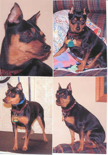 NAME: Sassy BREED: Manchester Terrier (MinPin) GENDER: Female (spayed) AGE: 3 yro WEIGHT: COLOR: Black & Tan, docked & cropped SURRENDERED: By family in Wayne, MI that had too many animals PERSONALITY: What a doll baby!! Sassy would just melt your heart. If you were looking for someone to cuddle with and treat like a baby - Sassy is the one. She is just a little peanut. She absolutely adores being held and loves to be talked to. She gets along fine with other animals - but because of her size you would have to be very careful. She is UTD on all vaccinations and heartworm negative. Must have a completely fenced and secure yard **UPDATE: Sassy was adopted by a very loving family in Imlay City, MI. |