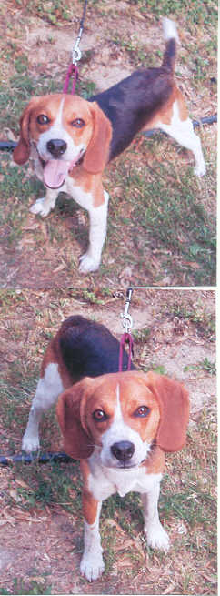 NAME: Snoopy (renamed Shiloh) BREED: Beagle GENDER: Male (neutered). AGE: 10-12 months young WEIGHT: 14.6# COLOR: RESCUED: PERSONALITY: Hi everybody, my name was Snoopy, but I was renamed Shiloh. I was adopted before my picture and bio even went up on the website. I was just wandering down the road, minding my own business when a nice policeman picked me up and brought me to the rescue. We all checked the papers and the vets, but evidentally my owners weren't interested in trying to find me, because no one reported me missing. I am crate trained and just full of energy. I was nothing but skin and bones when I was saved, but my new family promises to fatten me up in no time. I am UTD on vaccinations and heartworm negative. Must have a completely fenced and secure yard. **UPDATE: Snoopy (Shiloh) was adopted 6/8/05 by a wonderful family in Redford, MI. They already have adopted another rescue Beagle named Parker as well as a Pomeranian named Trixie that came from a puppy mill. Shiloh is having the time of his life with his new family. |