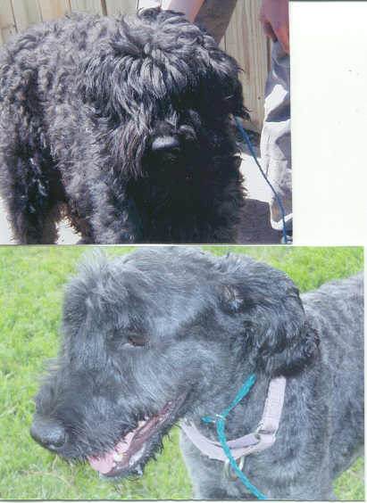 NAME: Buddy BREED: Bouvier des Flandres GENDER: Male (neutered) AGE: 4-5 yro WEIGHT: 90# COLOR: Dark Gray brindle, natural ears & tail RESCUED: PERSONALITY: Hi there, my name is Buddy and I came from Canada. I originally came into another rescue in spring of 2005. I did well in my foster home but became too active and ended up coming back. My original owners decided to get rid of me because they were getting new furniture. My previous foster Mom described me as friendly, playful, housebroken and clean. I will do best in a dog experienced home with someone that had good leadership skills. I do prefer not to be left alone for very long. I am crate trained and should be confined to one when left alone until I have properly adapted to my new house. I get along with other dogs. The top pictures were taken with my "Bouvier Cut" the bottom pictures were of my "shave down cut", I don't even look like the same dog! Must have a completely fenced & secure yard. UTD on vaccinations. Not cat friendly. **UPDATE: Well, Buddy is definitely having a Happy New Years. His forever Mom drove in from Brentwood, NY on New Years Day and picked him up. It was love at first sight. Buddy not only has a new forever Mom & Dad and family but will be joining two other SCBR rescues that they adopted: Shadow & Sydney. |