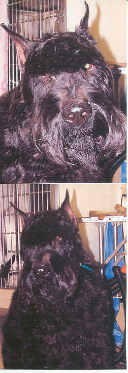 NAME: D'Artagnon BREED: Bouvier des Flandres GENDER: Male (neutered) AGE: Born 1/4/02 WEIGHT: 100# COLOR: Black, docked & cropped RESCUED: From Detroit Animal Control - owner surrender BIO: Hi there, my name is D'Artagnon (like one of the three musketeers :-) I was given up because my family could no longer keep me. I walk well on leash, and am a complete gentleman. I am housetrained, get along great with older children and other dogs. If you are interested in me you must have a completely fenced and secure yard. UTD on all shots, heartworm negative. Not cat friendly. **UPDATE: D'Artagnon was adopted 3/28/06 by a very loving family in Harper Woods, MI. D'Artagnon not only has a new forever family but has a new sister named Rene' that was adopted from us also. |