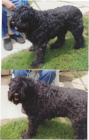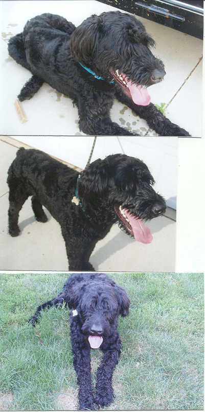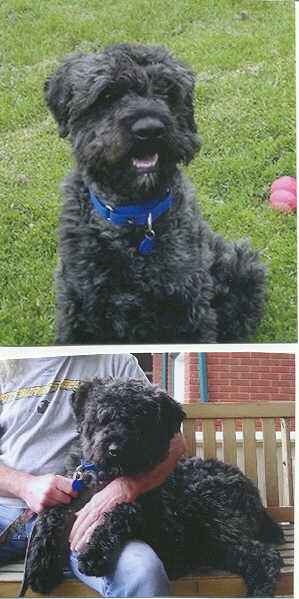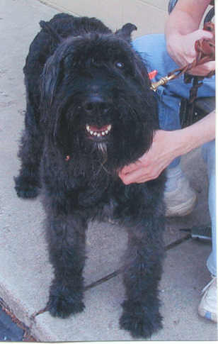 NAME: Bill BREED: Bouvier des Flandres GENDER: Male (neutered) AGE: 12-18 mos young WEIGHT: 68# COLOR: Black, docked tail, natural ears BIO: Hi there, my name is Bill. I was rescued from the Indianapolis Animal Care, Indianapolis, IN. I am housetrained, very friendly, get along great with dogs and with people. I am a very high-energy dog, so if you are looking for a couch potato, I am not the one you are looking for. I love to play and would make a wonderful companion for an energetic family that has the time and energy to share with me. I love going for car rides and walks. I can be a little hard headed at times, but with the proper training and a lot of love, I can be swayed very easily. You must have a completely fenced and secure yard. UTD on all vaccinations, heartworm negative. Not cat friendly. **UPDATE:Bill was adopted 7/14/06 by a very loving and caring woman in Ann Arbor, MI. She not only adopted Bill, but also adopted Max at the same time so they would be able to keep each other company while she was away. |