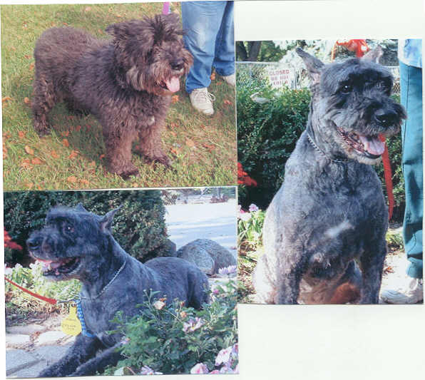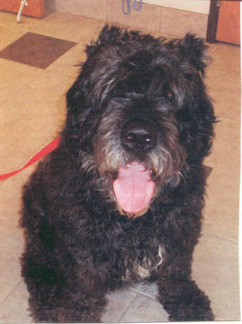 NAME: Nokia BREED: Bouvier/Bearded Collie/Schnauzer mix? GENDER: Male (neutered) AGE: Approx 5yro WEIGHT: Approx 50# COLOR: Dark gray, natural ears and tail BIO: Well hello there, my name is Nokia. I was surrendered by my former family to a high-kill shelter in OH because they were moving and I wasn't lucky enough to get to go with them :-( I am housetrained, get along great with children, other dogs, supposedly cats and absolutely love people. A kind woman saw a picture of me on the shelter's website and it just tore her heart out. I looked just like her Bouvier mix and she couldn't sleep knowing that she couldn't take on another dog but also knowing what my fate would be if I wasn't saved immediately. She called Second Chance Bouvier Rescue and asked if there was any way possible that they could take me in and save me - which they agreed they would. Instead of going to work the next morning, Kelly drove straight to the shelter, bright and early because she wanted to make sure that I wouldn't be put to sleep. I took one look at her kind and loving face and just knew she was there to save me. I immediately greeted her with loving kisses and was so grateful that she was there to get me. Kelly saved me and even drove part way to meet the people at Second Chance to turn me over to them. I am an absolute charmer, a real heartbreaker. I mind well, I come when I am called and will not let you out of my sight. I am just so grateful to be alive and I know that there is a family out there just waiting to welcome me with open arms. I would be the answer to anyones prayers, a loving and devoted companion and would turn inside out for any outward show of affection. I am not shy and I warm up immediately to people. I am heartworm negative, UTD on all vaccinations and may be cat friendly. You must have a completely fenced and secure yard to adopt me. **UPDATE:Nokia was adopted 7/25/06 by a very loving family in W Bloomfield, MI that had adopted our "first" real Bouvier, Betsy, when we started our organization. |