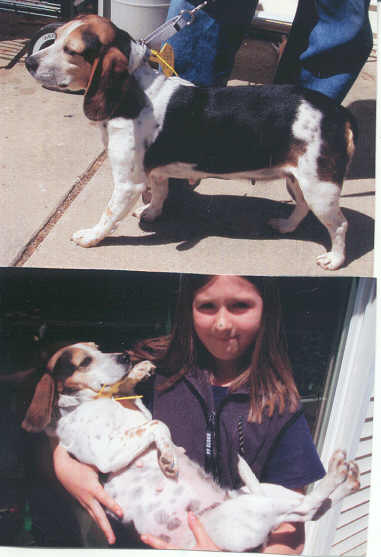 NAME: Hannah BREED: Beagle GENDER: Female (spayed) AGE: 4 yro. WEIGHT: COLOR: Tri-Colored BIO: Hi there, my name is Hannah. I was found running in the woods in hot pursuit of a rabbit by a very loving family. They were kind enough to bring me into their home to experience immense amounts of love and care. I was very timid and hand-shy but this loving family showed me more love and trust in the short wile they took care of me than I obviously received in my former home. The vet thinks I had experienced motherhood many times and had been badly neglected. As you can tell from the pictures, I absolutely adore attention. I would make a wonderful addition to any family. I adore children and get along fantastic with other dogs. The rescue named me after one of my junior caregivers, Hannah, who went above and beyond my wildest imagination by showering me with her love and attention. She would hold me like a baby and I would fall sound asleep in her arms. Can't you tell by the pictures that I am in seventh heaven? She even put pink & blue nail polish on my nails so I would look extra pretty when rescue came to pick me up. I love to play and go for walks. As much as my caregivers would have loved to keep me, they wanted what was best for me and decided to let me find my own new forever home. I was adopted out once to an older couple. I just loved playing with their grandchildren and thier dog. I would be best suited to a home with children and another dog. I was returned to rescue for my own safety. I wanted so badly to play with the other children and dogs that I had a bad habit of climbing the fence. I figured if they couldn't come visit me, by golly I would have to go and visit them. You must have a completely fenced & secure yard. UTD on all vaccinations - heartworm negative. Not cat friendly. ** Update: |