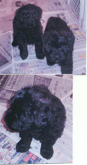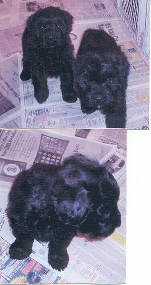 NAME: Sage (Sage Brush - formerly Meenie) BREED: Bouvier des Flandres GENDER: Female AGE: Born 1/27/06 WEIGHT: COLOR: Black, docked tail natural ears RESCUED: BIO: Sage was born 1/27/06 and whelped while her mother was in rescue. She was one of four puppies born (the pups were originally named: Eenie, Meenie, Miney & Moe) Moe passed away shortly after birth and his little sister Eenie passed away at 5 weeks of age - both due to a genetic deformity. Here is a picture of Sage with her sister Lucy at 6 weeks of age. **UPDATE:Sage was adopted on 3/24/06 by a fantastic family that lives in Hudson, MI who had just recently had to say goodbye to their beloved Bouvier, Austin. |