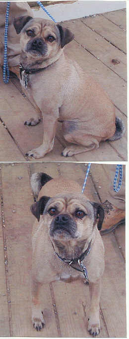 NAME: Pugsley BREED: Pug Mix GENDER: Male (neutered) AGE: 4 yro WEIGHT: 20-25# COLOR: Tan with dark markings, tightly curled tail PERSONALITY: Hello everybody, my name is Pugsley. Am I not just the cutest little thing you ever saw? I was originally found running loose in a trailer park. The woman that found me turned me over to the rescue. I was adopted out to a family that thought I was the spitting image of the dog that they had for quite a few years. I lived very happily with my new family until just recently. They decided to return me because I was just too much for them and they didn't have enough time for me. If a door was held open I would run out - they didn't train me not to - just as I didn't train them not to hold the door open when I was around. That doesn't make me a bad boy - I was just doing what is normal for a small energetic dog. I can only say that if the opportunities had not been made available to me - I wouldn't have taken them. I am very alert, housetrained and I get along great with other dogs. I am a real people pleaser and I do really miss having my own family. I get along well with children - but because of my slight stature should not go to a home with really small children. I do hope someone out there can find it in their heart and home to want to give me another chance. I promise to love and adore you in reward for a kind heart and warm arms to go around me. I am UTD on all vaccinations and heartworm negative. I do not get along with cats. You must have a completely fenced and secure yard. **UPDATE: Well, Pugsley started the new year off right. His new owner came to meet with him before the holiday and came today 1/2/06 to pick him up and bring him home. Pugsley recognized him and went right to him as if to say "let's get out of here Dad". Pugsley will now be resideing in Midland, MI with his new Dad. |