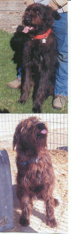 NAME: Ralph BREED: Bouvier mix GENDER: Male (neutered) AGE: 2-3 yro? WEIGHT: 90# COLOR: Black brindle, natural ears & tail RESCUED: Originally from LA County Animal Control in CA BIO: Hello everybody, my name is Ralph! When I was almost a year old I flew up to Michigan from sunny California. I know that in my picture I look brown, but I am really black (possibly sunbleached). The top picture was taken about a year ago - the bottom picture was just recently taken. I am housetrained and full of gusto. I was adopted once, but returned because I was too protective of my owner. When we were out walking I didn't let any other dog or stranger come near us. What I am desperately searching for is a very experienced dog owner that will love me enough to properly train me so that I do not have to feel that I must be in the protective mode all the time. I would probably do quite well as an "only child", so if you are an "empty nester" - I might just be what you are looking for. I am UTD on all vaccinations. Must have a completely fenced and secure yard. Not cat friendly. **UPDATE:Ralph has been made a permanent resident of Second Chance Bouvier Rescue. He has been with us so long that he thinks he is home and it would be devastateing to him if we tried to relocate him. He will spend the rest of his life on the rescue farm with the other rescues that were never adopted. |