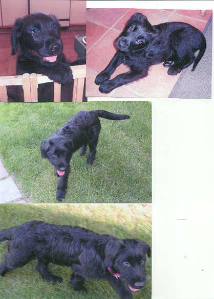 NAME: Sadie BREED: Bouvier des Flandres/Labrador Retriever mix GENDER: Female AGE: Born 1/28/06 WEIGHT: 20# COLOR: Black, natural ears & tail BIO: Hi there, my name is Sadie. I was surrendered by a family in Wyandotte, MI because I was the last pup left from an OOPS breeding. My Mom is a purebred Bouvier, my Dad a purebred Black Lab. My Dad came over to "play with" my Mom when my owner was not home - and here I am!! I am pretty much housetrained. I am crate trained, as a matter of fact I will go into my crate and wait for a treat. I am very well mannered for such a youngster. I get along great with other dogs, and love people. Because I am so young, I may even get along with cats (if they will get along with me :-) I have a "wash & wear" coat and will need only minimum grooming. I am UTD on all vaccinations. You must have a completely fenced and secure yard to adopt me. **UPDATE:Sadie was adopted 6/25/06 by a very loving family in Garden City, MI. **RECENT UPDATE: Here are the most recent pictures that Sadie's Dad sent to us. Boy has she grown :-) She is doing fantastic and they just love her to death. ![]() |