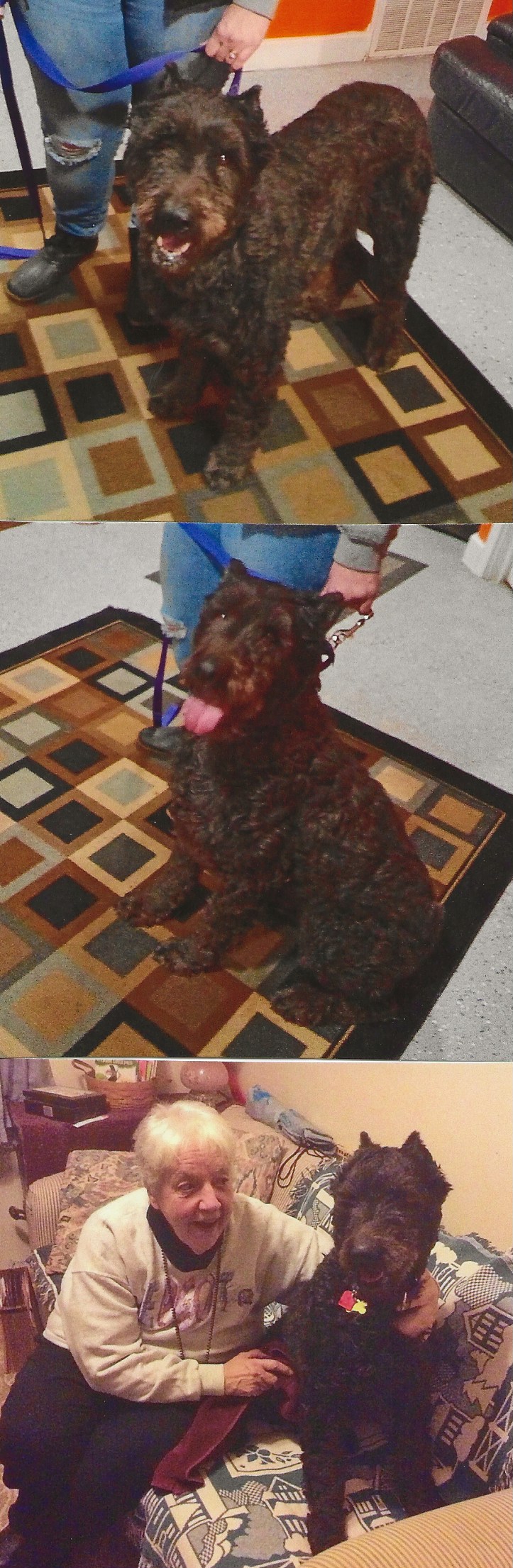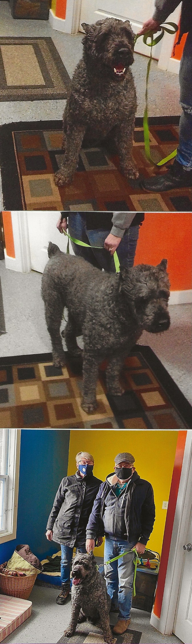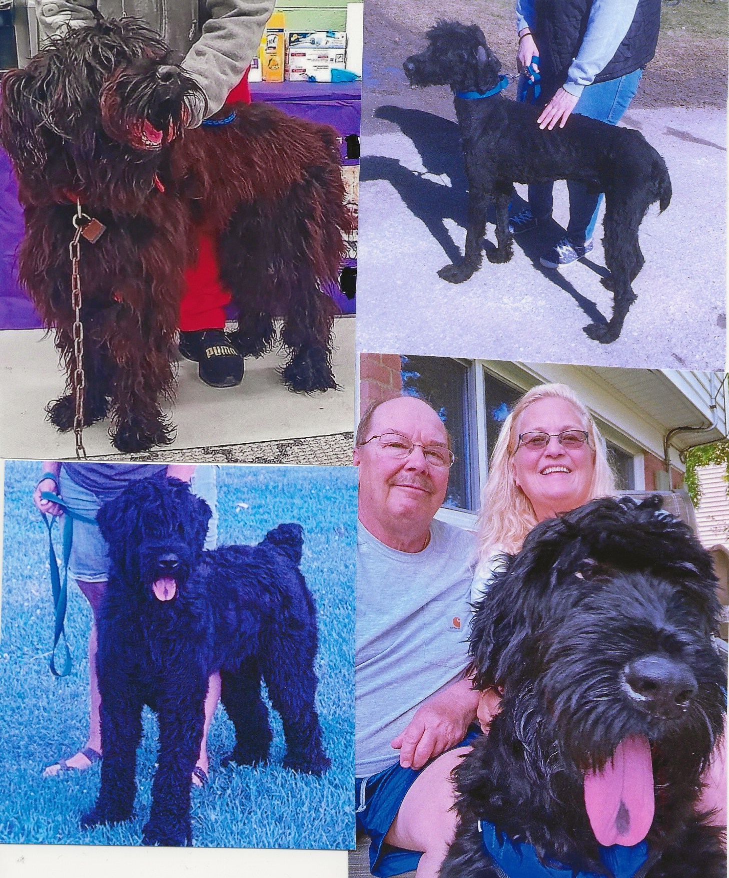 NAME: PARKER BREED: Bouvier des Flandres GENDER: Male (neutered) AGE: 2/24/20 (approx.) WEIGHT: 54# (intake) 75# (present) COLOR: Black, natural ears, docked tail BIO: (Top pics are when we took him in, bottom is how he looks now and with his new forever family). We received a call from the Detroit Police Department this past February. They picked up a Bouvier that was running loose in traffic dragging a tow chain that was secured around his neck with a padlock that required a key to open it (a bolt cutter was used to remove it). They called to see if we would take him and we said - absolutely. He is docked, natural ears, jet black. He weighed 54# when they picked him up. He was dehydrated, starving and tested heart-worm positive with no microfilaria present. He was an absolute mess, but very friendly. They opened up the squad car door and he jumped right in. I have pictures that you wouldn't believe. When we got him to the vet he threw up pieces of plastic, paper plates, styrofoam, wire, rocks, you name it, but no food. He was ravenous. Because he was so emaciated, we had to bring his weight and health up before we could neuter him and do the heartworm treatment on him. As of 6/17/21 he now weighs 71.9# and looks fantastic. He is very puppyish and just wants to play. Parker gets along fine with people (prefers females) and young adults. We had to keep him quiet and quarantined for 60 days in between his heartworm treatments and we received the ok on him on the 17th. He will have to be heartworm tested every year and MUST be on heartworm preventative every month for the rest of his life. Even though they are treated for heartworm it can show back up in the blood as long as six years later (which I just found out). Other than that, he is a good boy, house trained, knows basic commands, walks fairly well on leash, rides well in a car. Parker is not for the faint at heart, he is very rambunctious and can be a handful. You must have a completely fenced and secure yard in order to adopt any of our rescues. Especially Parker, because he is going to be a runner. Being chained up all his life, then because of the pandemic having to be quarantined for four months for his heartworm treatments, it is no wonder. He runs like a gazelle, but is like a bull in a china shop. Currently being fostered in Imlay City, MI. UPDATE: Parker was adopted 7/13/21 by a wonderful family in Clinton Twp, MI. They are repeat offenders and just recently had to say goodbye to their beloved Ceela (adopted from us in 2014). Parker has a huge, completely fenced in yard that is impeccably landscaped. Parker’s new Mom loves to walk and this will be right up Parker’s alley. |