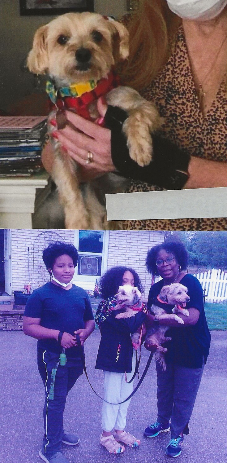 NAME: COCO BREED: Yorkshire Terrier GENDER: Female (Spayed) AGE: born 2/9/12 WEIGHT: 11 # COLOR: Cream and Gray BIO: Hi there, please meet Coco. Coco was surrendered to us by a woman that had adopted her from a rescue a couple of months prior. The reason given is that she was too needy. Coco is house-trained, crate trained, UTD on all vaccinations and heart-worm negative. So, if you are looking for that special little someone to complete your family, Coco could definitely be the puzzle piece your family has been looking for. She is so loving, loyal and attentive and just needs to go to a family that can appreciate her and want to love and care for her as much as she wants to love them. She loves everyone, kids, dogs and cats. She walks well on a leash and rides well in a car. Coco is currently being fostered in Imlay City, MI. You MUST have a completely fenced and secure yard in order to adopt any of our rescues **UPDATE: Coco was adopted 7/8/21 by a very loving family from Huntington Woods, MI. This family previously adopted one of our rescues, Snickers, in 2019. Here is the adoption picture, Coco is in the middle and Snickers is on the end. |