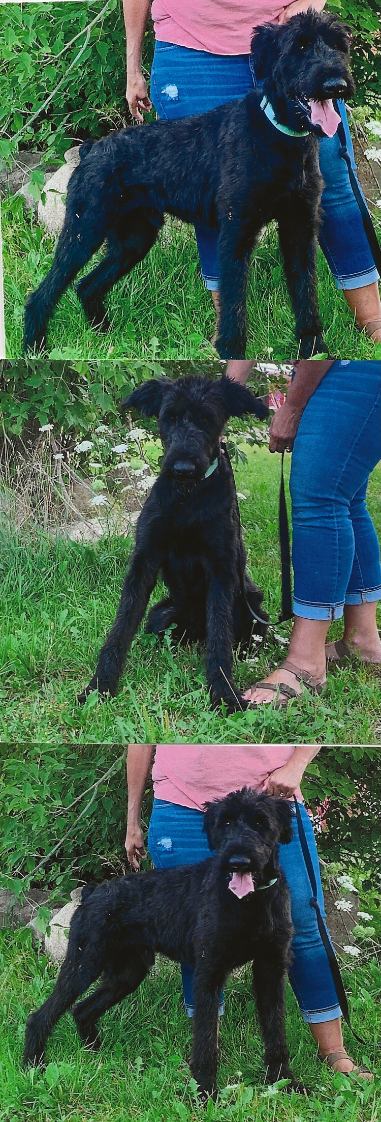 NAME: BISHOP BREED: Giant Schnauzer GENDER: Male (neutered) AGE: Born approx. 7/4/18? WEIGHT: 69# COLORS: Black, docked tail and natural ears BIO: Hello everyone. We would like you to meet Bishop. Bishop was picked up as a stray by Detroit Animal Control a couple of months ago. As usual, he was emaciated, a filthy and matted mess, and had to be shaved down in order to clean him up and make him comfortable. We all thought he was a Bouvier, even our vet, but in very poor condition. Because he had to be shaved down completely, we had to wait until his hair started growing in before we figured out he was really a Giant Schnauzer. Bishop is housetrained and walks really well on a leash. Bishop is very vocal and will almost carry on a conversation with you if you let him. He tolerates other dogs and is selective as to which ones he wants to be around. He may have to be an only child – depending on your current dog. Bishop loves to play and absolutely adores children but we would not recommend him with young children. Bishop is very energetic and could accidentally knock down a young child. Bishop is a little on the hyper side and we are working on him taking treats “nice” and not being so grabby. He does not appear to be high prey drive and shows little to no interest in cats. Bishop is UTD on all vaccinations, heartworm negative (and on preventative), neutered and microchipped (with a life-time registration). Bishop is very energetic and loves to run around outside and play. He would be best suited with someone that was athletic and/or energetic. Bishop was a perfect gentleman at the vet’s office. He minds well and aims to please. You MUST have a completely fenced and secure yard in order to adopt any of our rescues. Bishop is being fostered at our facility in Imlay City, MI. **UPDATE: Bishop was adopted 8/27/22 by a very knowledgeable Giant Schnauzer family in Delaware. OH. He will not only have a new forever family, but will be joined by another Giant Schnauzer as well as two Miniature Schnauzers. |