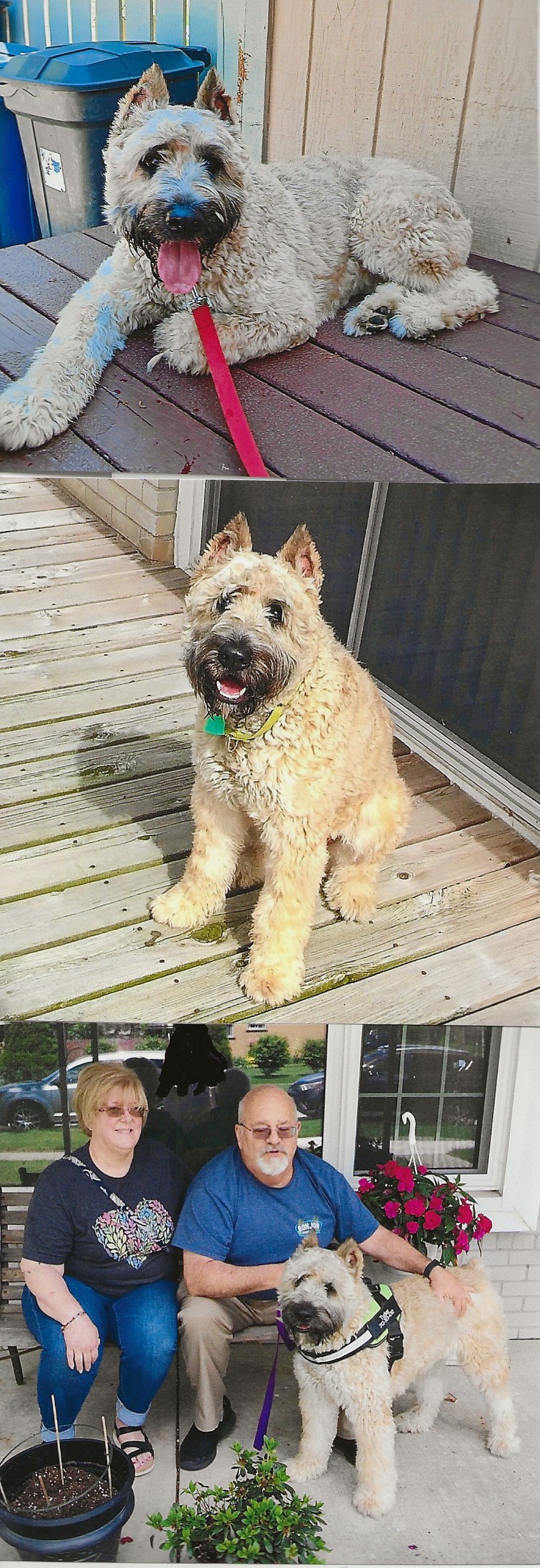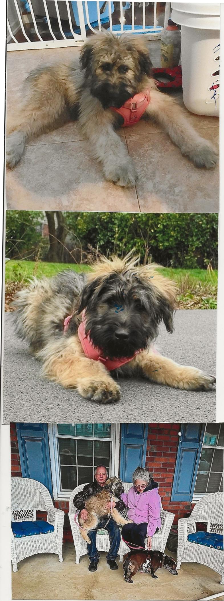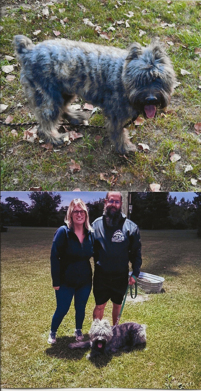 NAME: CHEWIE BREED: Bouvier des Flandres GENDER: Male (neutered) AGE: Born 12/26/19 WEIGHT: 90# COLOR: Gray brindle, docked and cropped REVISED BIO: Chewie was surrendered by his Dad due to his new work schedule not allowing appropriate time to spend with him. Regretfully, Chewie was frequently left alone and kept in a crate in the garage. He did not have a fenced in yard, so the only activity he had was at the end of a leash. Needless to say, when we took him into our facility, he thought he had died and gone to heaven. He had a huge indoor/outdoor kennel run with direct access to a half acre completely fenced in area. When we first got him and he felt the freedom, we had a hard time coaxing him to come indoors. Sun, snow, cold, wind, rain, it didn’t matter to him. Then, once he saw that when he came in he had food and water and got all kinds of lovin’ from his Foster Mom – he realized that it wasn’t such a bad deal after all. Chewie is a big boy and we did get a little weight off him that we feel was the result of his previous sedentary life. He came in at 115# and with the proper food and exercise, he is now a svelte 90#. We also had his thyroid tested, just in case, but it was fine. Chewie is house and crate trained, but we have our paws crossed the crating will no longer be necessary in his new home. Chewie walks fine on a leash and excellent with a harness. Chewie appears to be especially close to women. He is good with men, but is very cautious if they are wearing a hat or hoodie. We found out that Chewie is NOT afraid of thunderstorms, but that that he does not like exceptionally loud noises or loud voices (who does?). He was a really big hit at the vet’s office when we took him in. Because of his size, we would not recommend he be around young children. He could easily knock them down and accidently harm them. He doesn’t appear to have a problem with other dogs. The foster Mom has taught him the basic commands. He does know that when he comes in to eat he has to sit before his food is put down. Considering his size, surprisingly, Chewie takes treats from your hand so very gently. So, if you are looking for that special someone in your life, look no further, he could be your guy. He absolutely loves to play and really loves to be loved on and cuddled with. You MUST have a completely fenced and secure yard, preferably 6ft fencing, in order to be considered. Chewie is UTD on all vaccinations, micro-chipped and registered, heartworm negative and on heartworm and flea & tick preventative. We are looking for that special someone that has been previously owned by a Bouvier. Someone that understands and can appreciate what a gem Chewie really is. Someone that will not be leaving him for extended periods on a daily basis. Chewie is at our facility in Imlay City, MI. Not cat friendly. **UPATE: Chewie was adopted 6/3/24 by a very loving gentleman in Harrison Township, MI. Chewie not only gained a Forever Dad, but also a Forever Bouvier Brother named Phred. This was a match made in heaven. Chewie needed them to heal his broken heart, as much as they needed him to heal theirs. Such a rewarding day for everyone. |