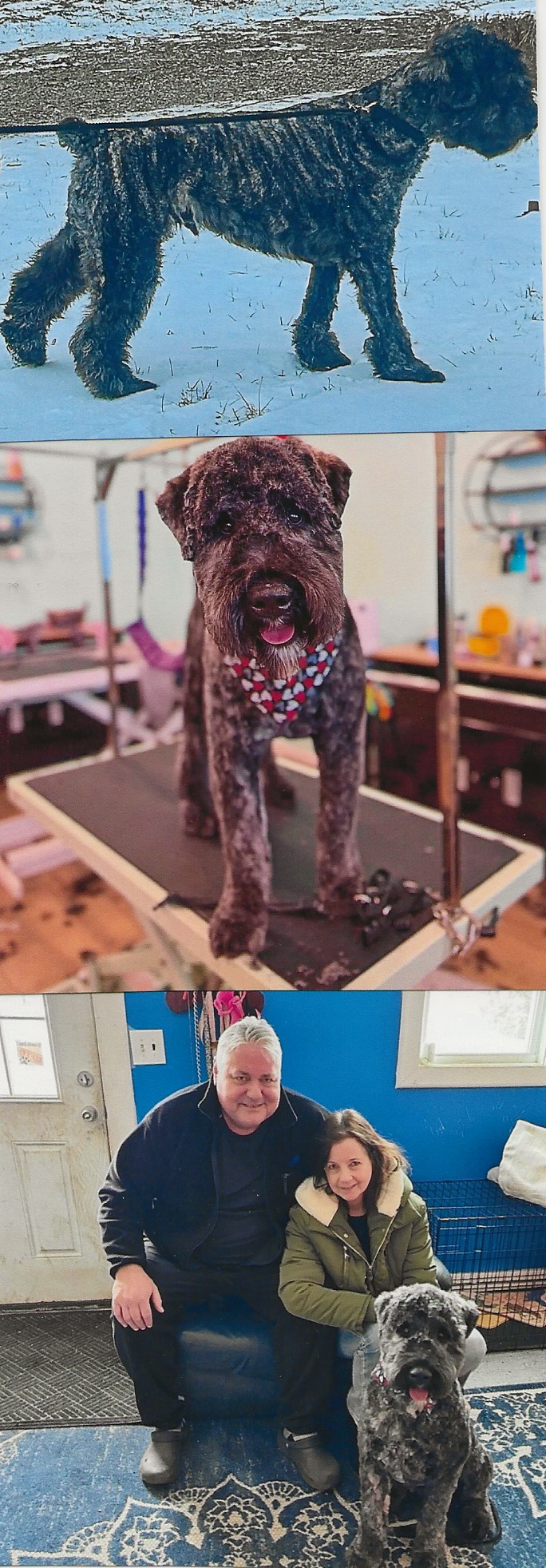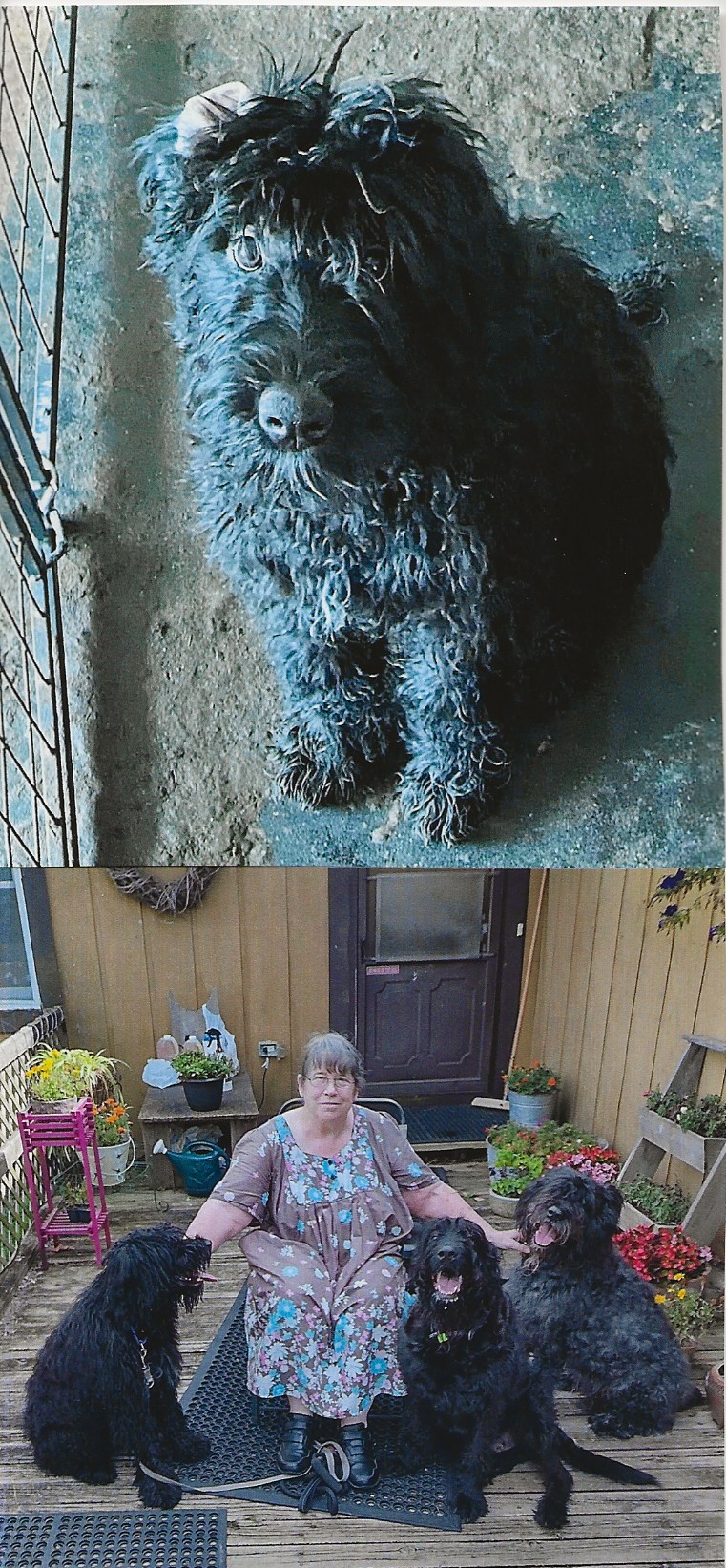 NAME: CLEO (Cleopatra) BREED: Bouvier des Flandres GENDER: Female AGE: Born 12/14/24 WEIGHT: approx. 50 # COLOR: Black, natural ears, poorly docked tail BIO: Hi there, my name is Cleopatra, my friends call me Cleo. I was surrendered by my family because I was the last puppy in the litter and my bio Mother did not want me around any longer. My bio Mother and Dad are remaining with my former owner/breeder. When my bio Mother came into heat, she was so jealous of my bio Father’s interest in me that she decided she wanted to eliminate me. This was not beneficial to anyone so my owners decided to re-home me before anything terrible happened. I am a very nervous and skittish little girl, but the rescue thought I had great potential and decided to take me on. My Foster Mom worked her magic and within a couple of weeks had me kennel trained and walking on a leash. I am UTD on all my vaccinations and on heartworm preventative. A spay contract will have to be signed by my Forever Family since I am too young to be safely spayed. I will also have to be microchipped. I get along great with other dogs, not too sure about cats, though. I am currently being cared for in Imlay City, MI. You must have a completely fenced and secure yard in order to adopt me. **UPDATE: Cleo was officially adopted on 7/9/25, by a phenomenal woman in Milan, MI. This is the fifth rescue that she has adopted from Second Chance Bouvier Rescue. Cleo's new Mom has the patience of a saint and the stamina of a bull. Cleo not only has a new Forever Mom, but also has two Bouvier Brothers: Edgar and Ruff. Echo, her last Bouvier from us, went to the Rainbow Bridge at the ripe old age of 14½ years young. Cleo's new Forever Mom proudly calls herself one of our “repeat offenders”. Here is a picture of all four of them. Cleo is by her Forever Mom’s right hand. |